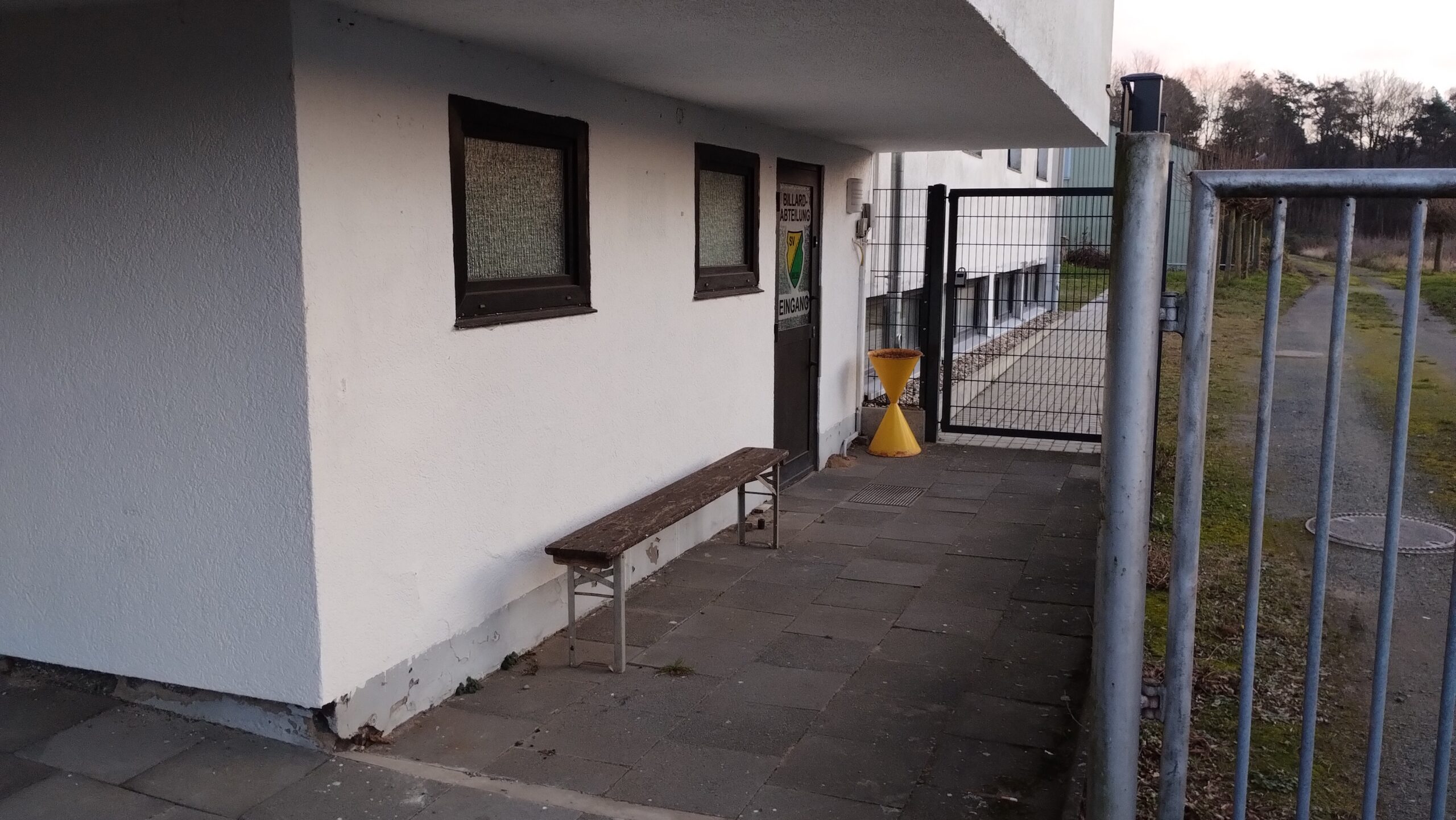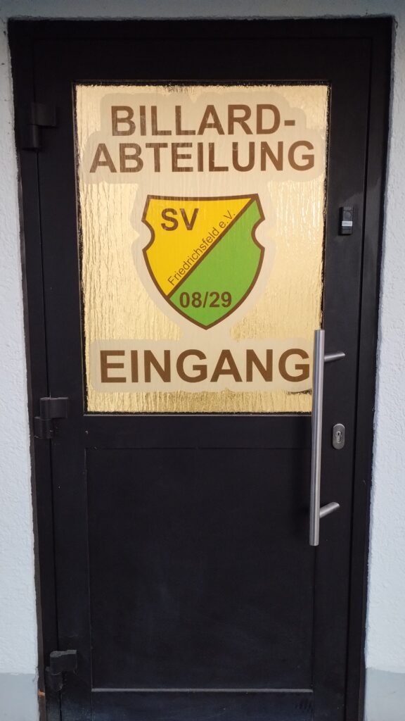 Der Billardraum ist seit 2023 nicht mehr über den Schankraum der Gaststätte erreichbar. Ihr müßt um das rechts neben der Gaststätte liegende Wohnhaus herum gehen. Zwischen Häuserwand und Stahlgitterzaun liegt ein schmaler, kurzer Weg, der Euch zum Hintereingang führt. Dort gibt es eine Klingel und für den Fall der Fälle, dass die Funkklingel versagen sollte, könnt Ihr über die Telefonnummer des Billardraumes (0281 / 15498904) auf Euch aufmerksam machen.